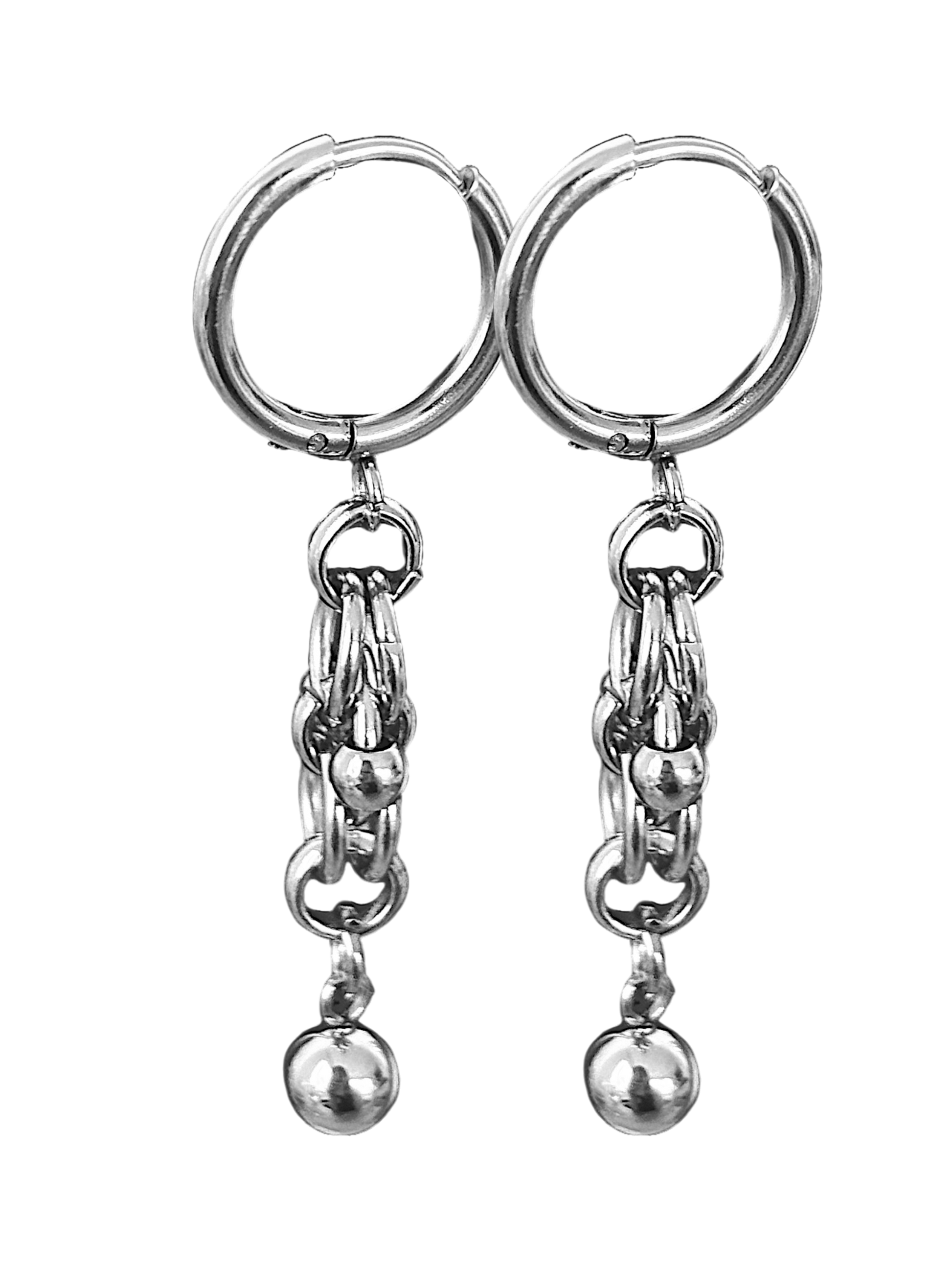 - Beaded Chainmail with Ball Charm on Stainless Steel Hoop Earrings