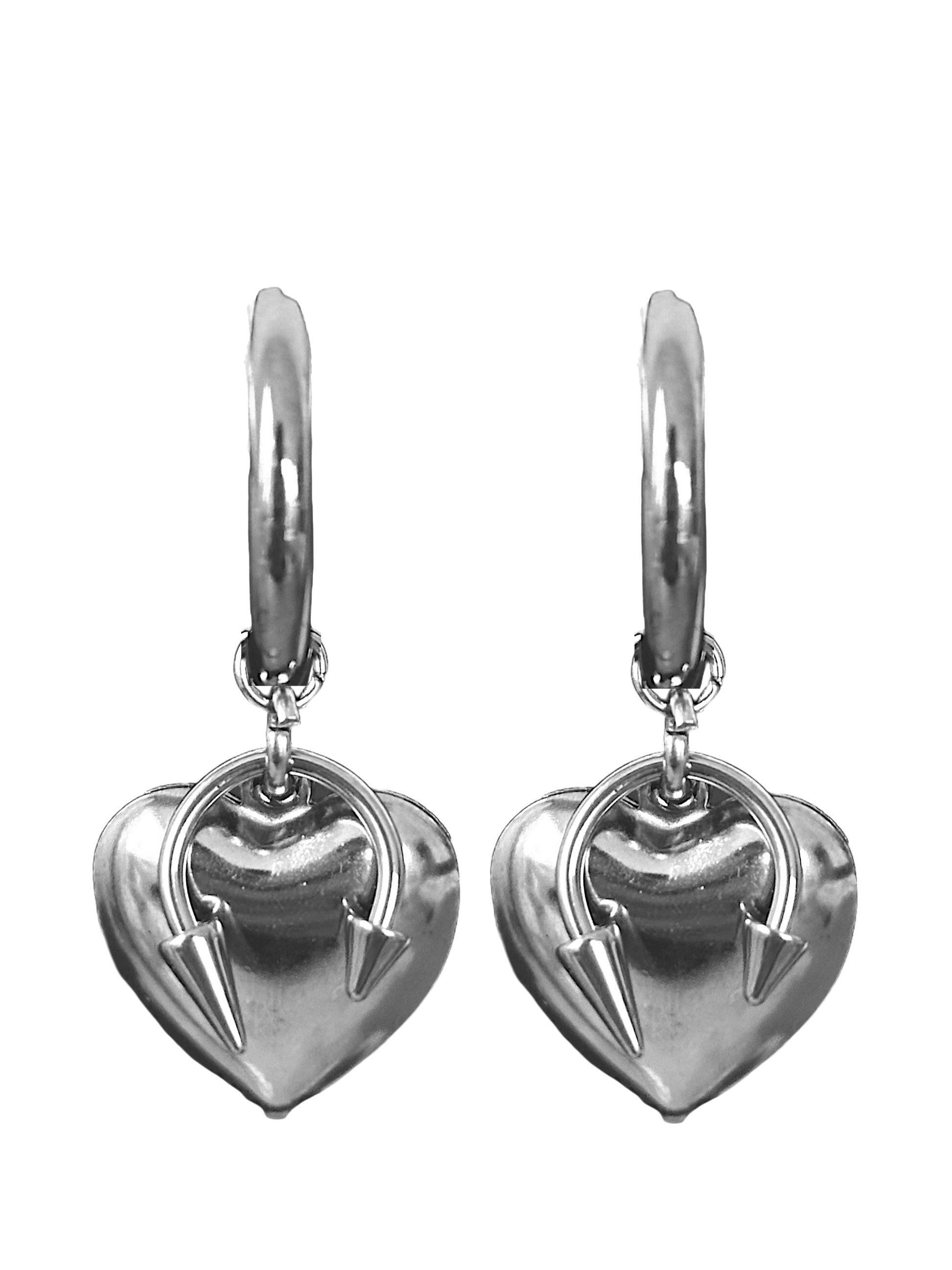 - Stainless Steel Heart Charms and Asymmetrical Piercings on Stainless Steel Hoop Earrings
