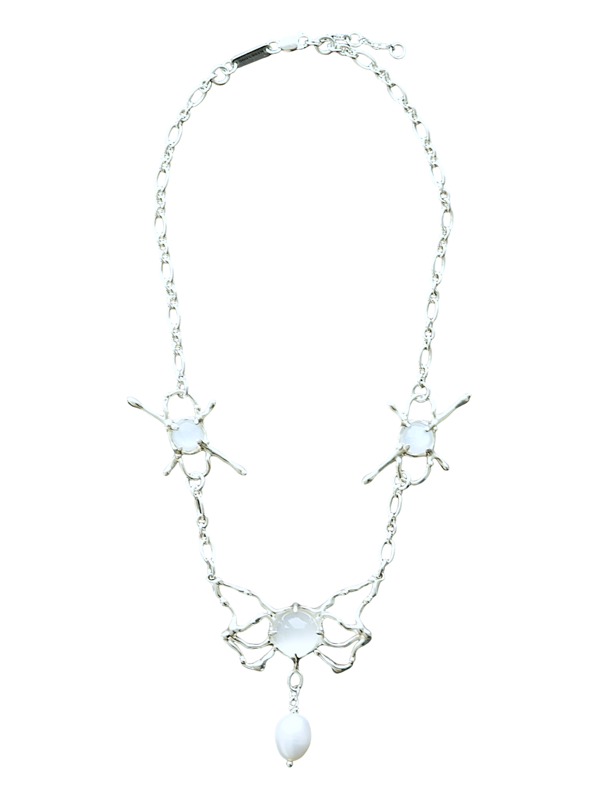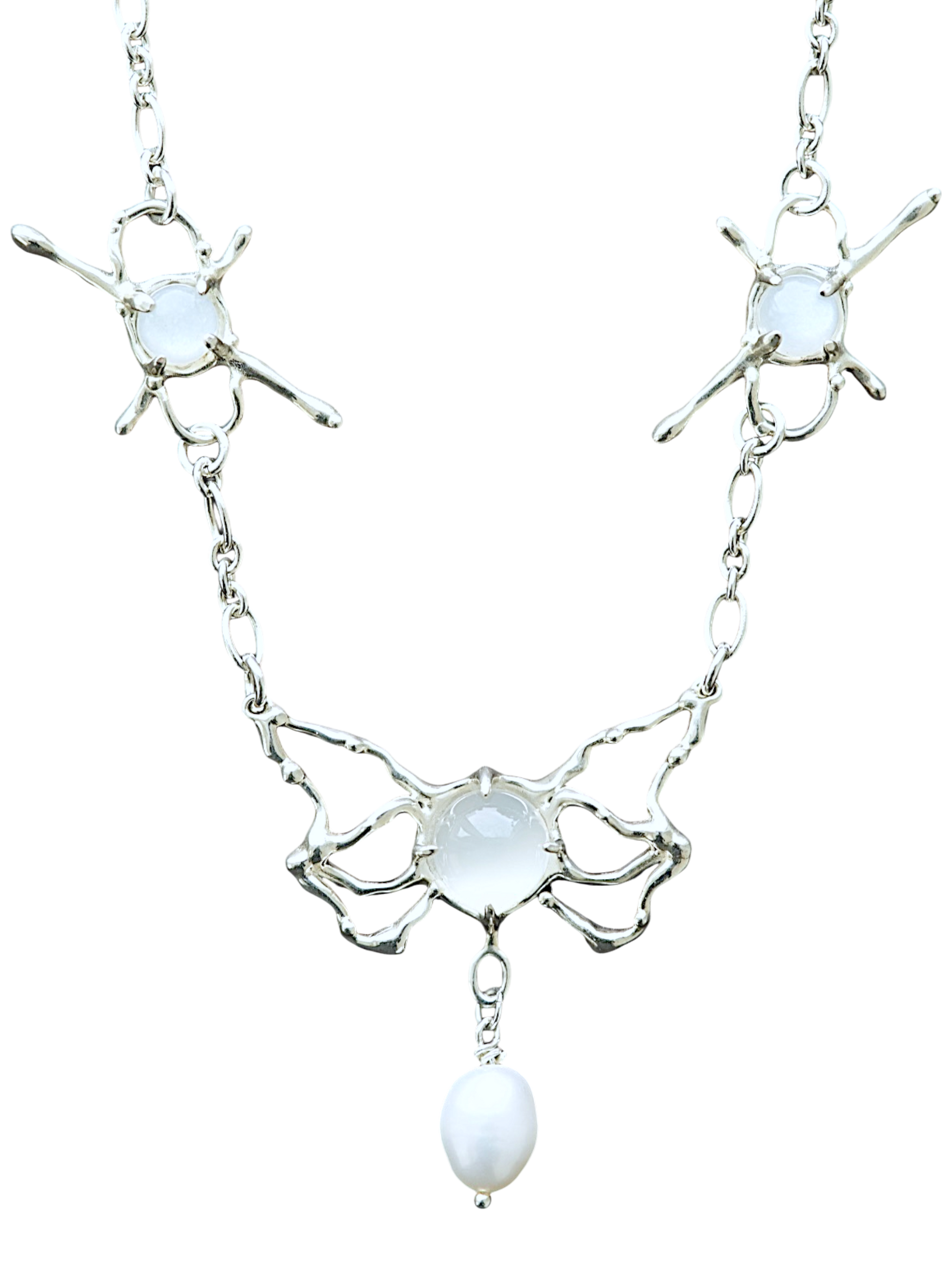 - Made out of solid S925 sterling silver, chalcedony, moonstone, freshwater pearls