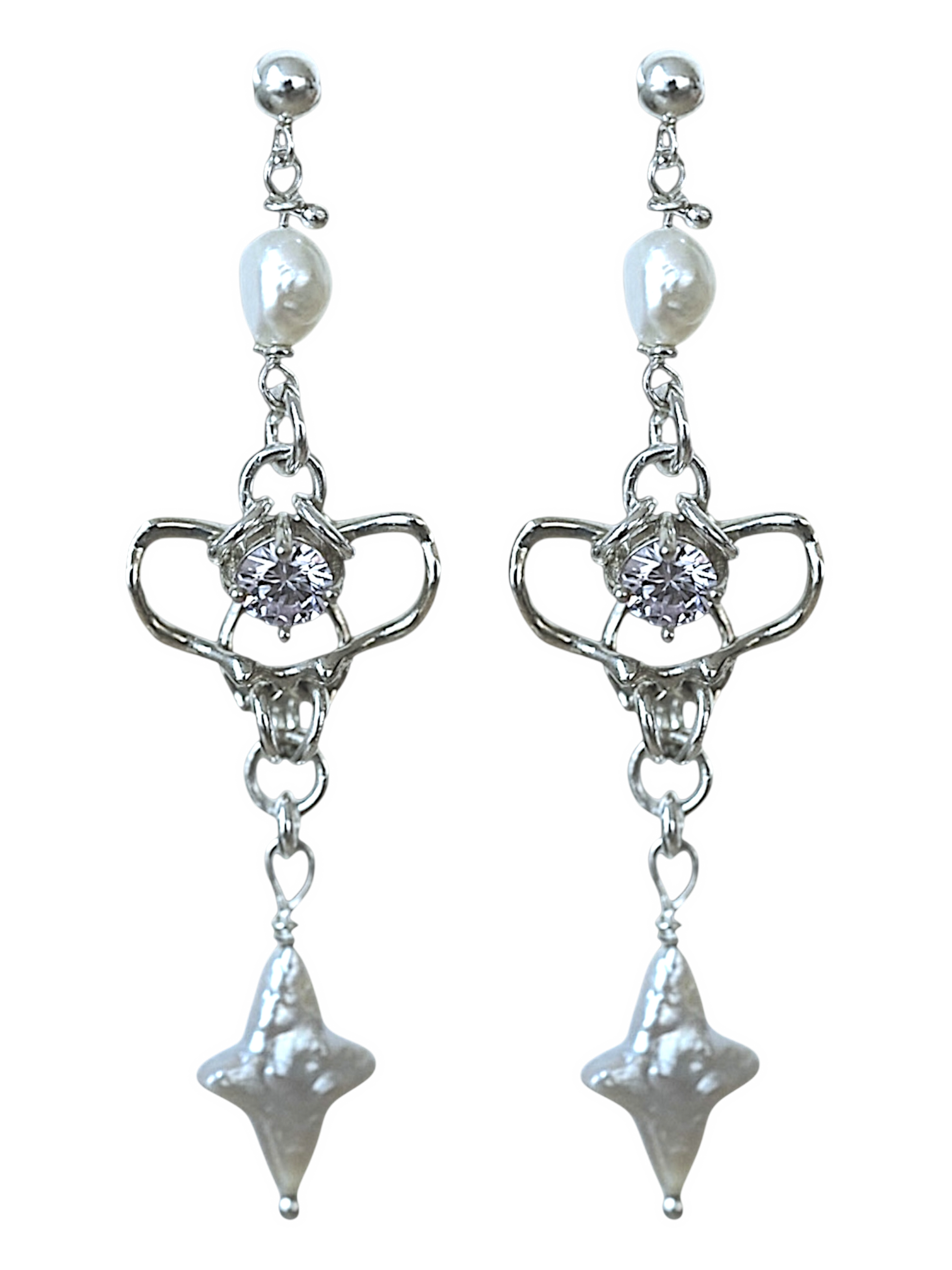 Lighthearted and magical, these sterling silver earrings twinkle with playful pearl details.