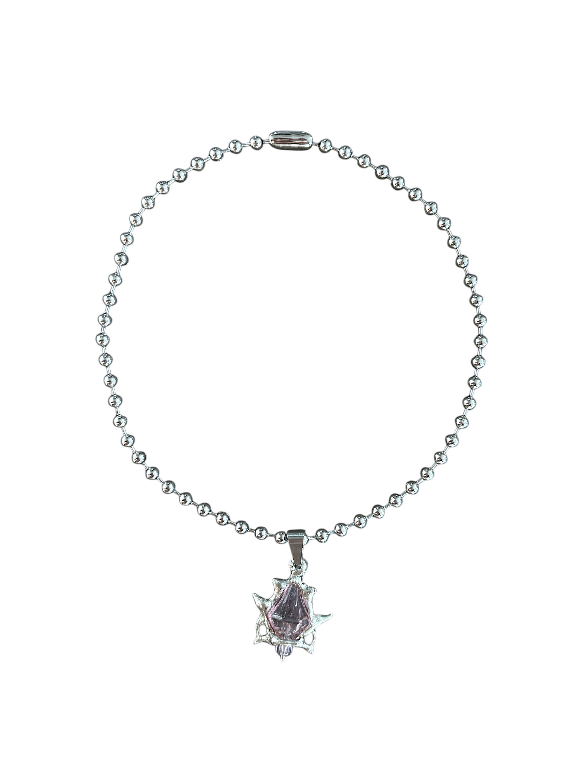 - Spiky soldered mini glass vase on stainless steel ball chain.
