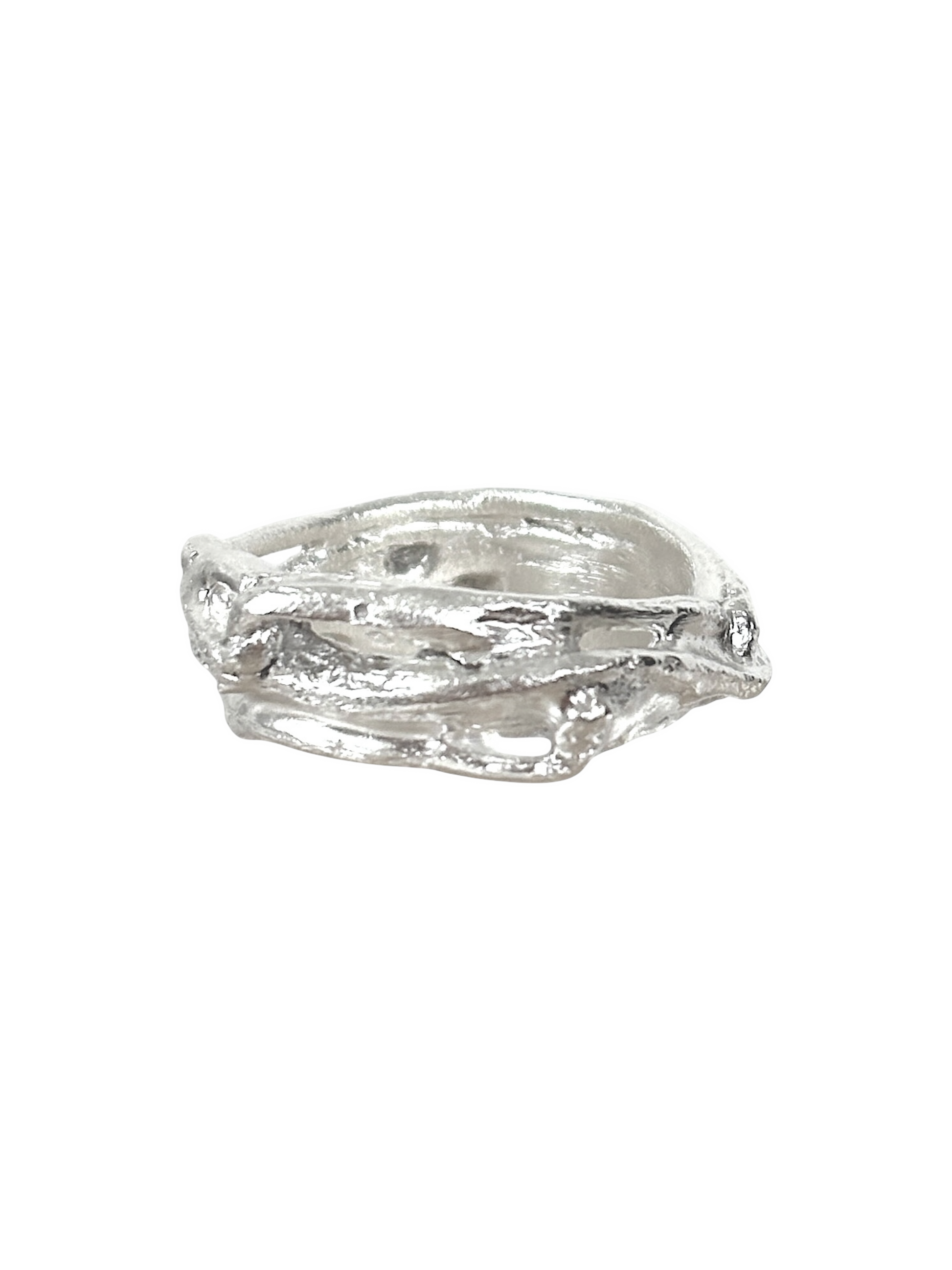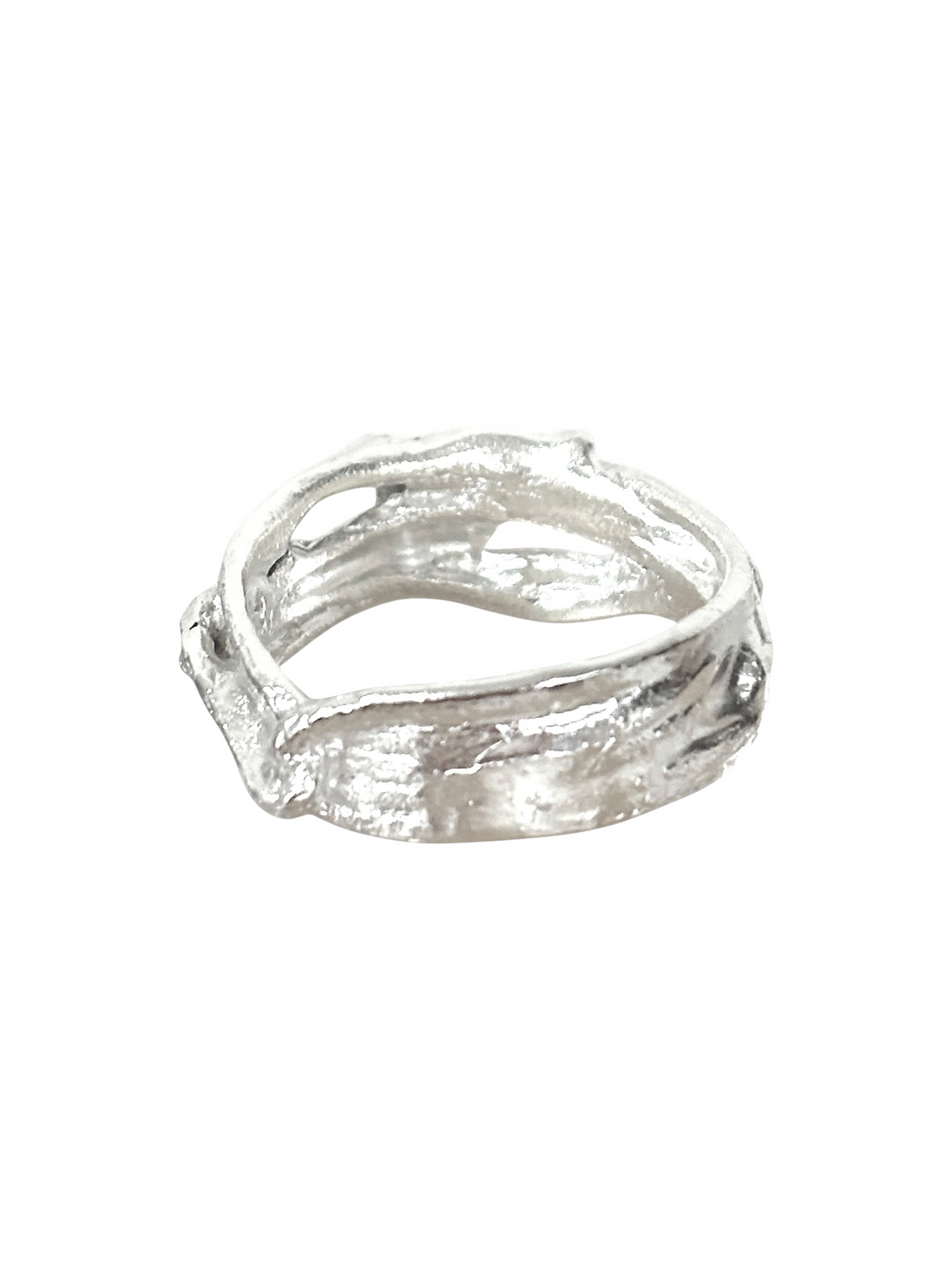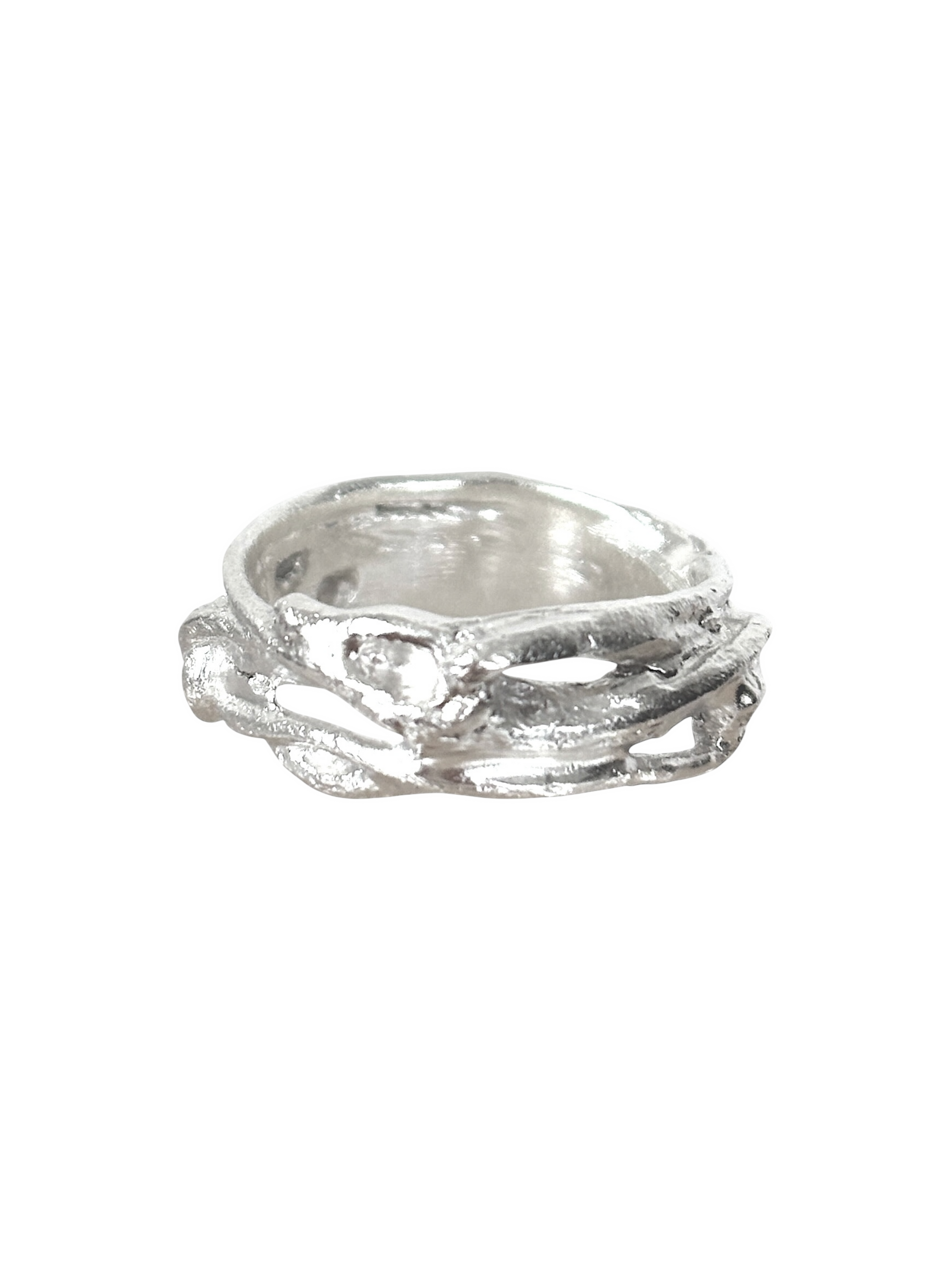 Layers of woven texture and fluidity immortalized in silver through this Threads Ring